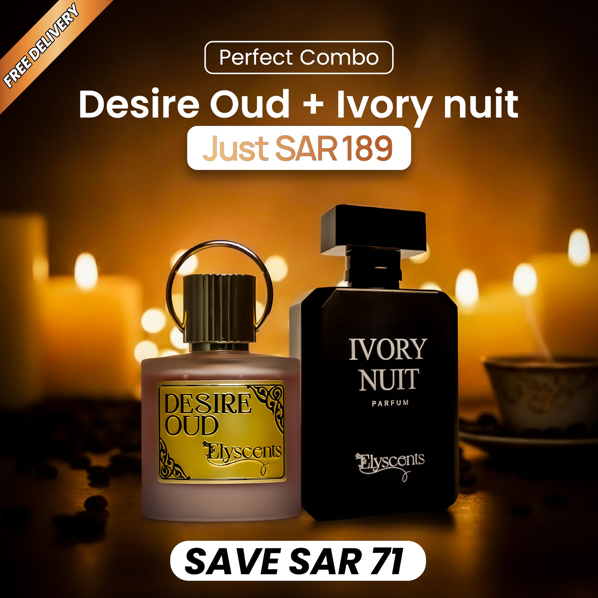 (1x Desire Oud + 1x Ivory Nuit – 189 SAR | FREE Delivery | Save 71 SAR)